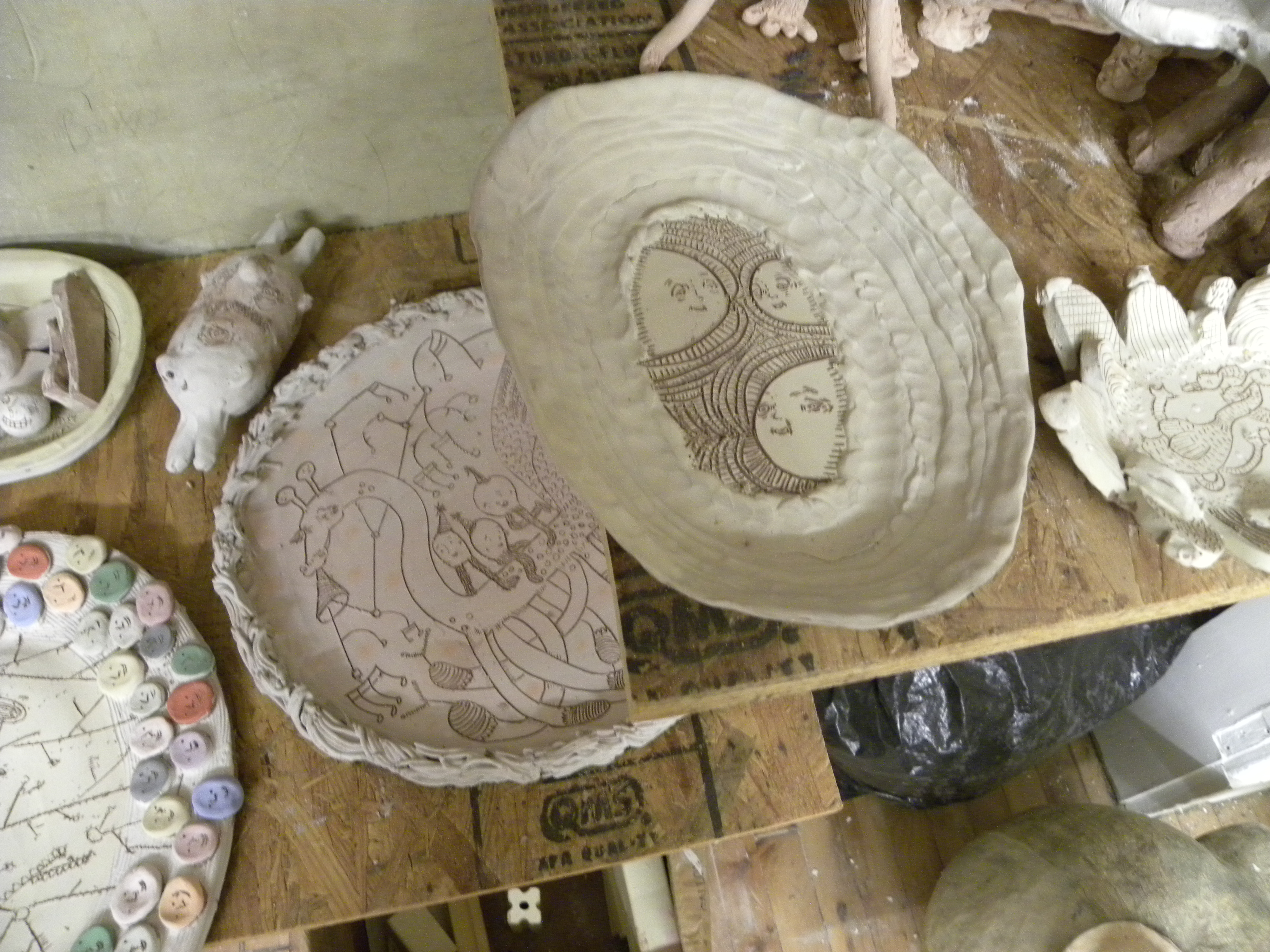 just loaded the kiln last night—here are a couple pieces that are in the ‘greenware’ state—I love the fragility and possibility that they’re in before firing—about to go under transformation coming out stronger and closer to complete